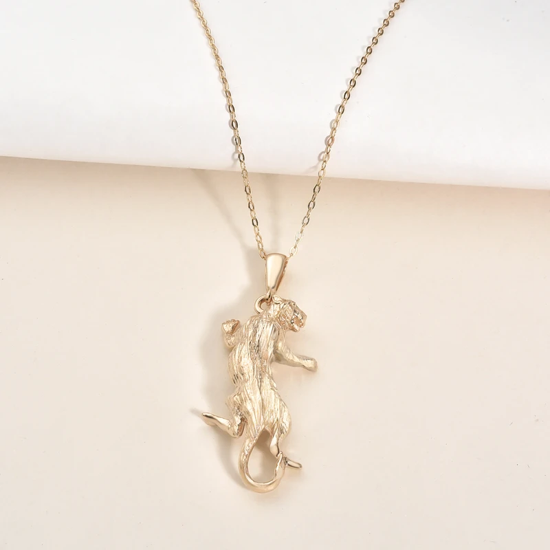 14K Yellow Gold Textured Climbing Panther Pendant.