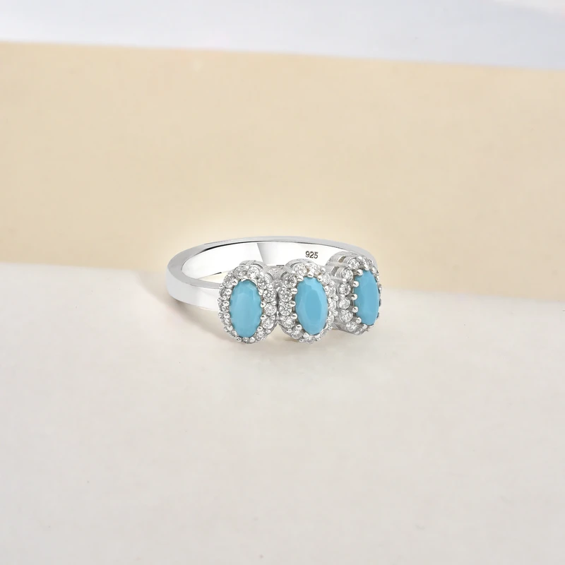 Turquoise Halo Past-Present-Future Ring