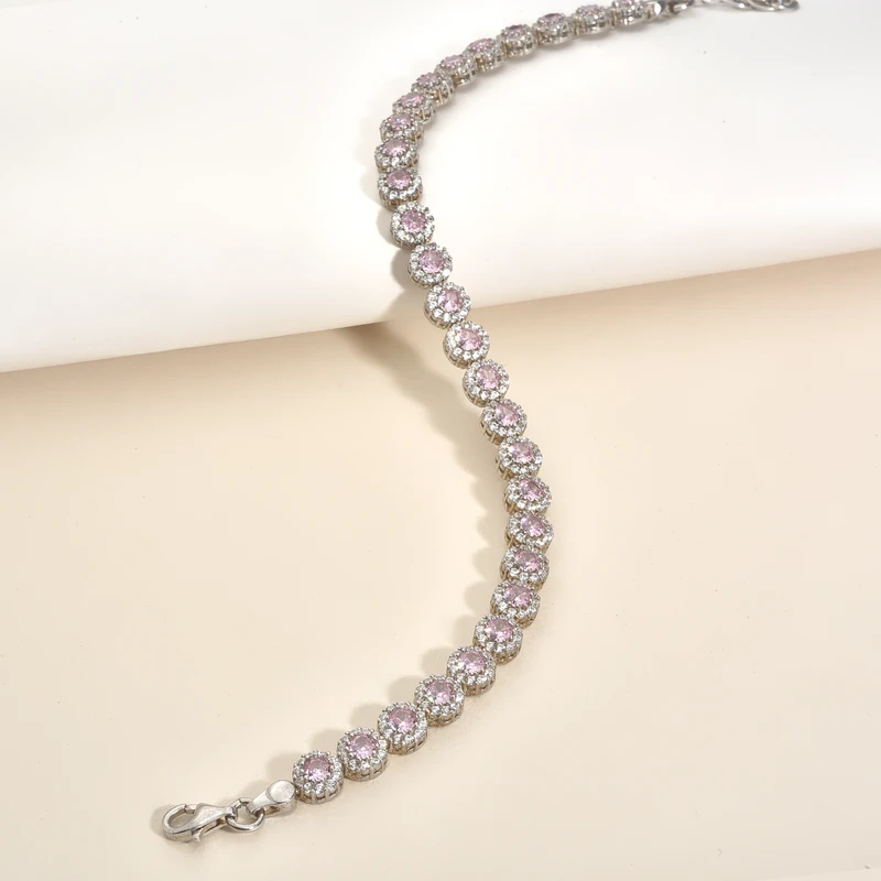 Brilliant Ruby-Tone Silver Halo Link Bracelet