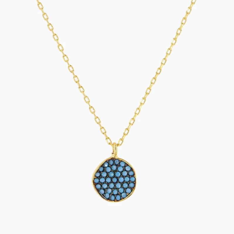Gold Halo Evil Eye Pave Circle Necklace