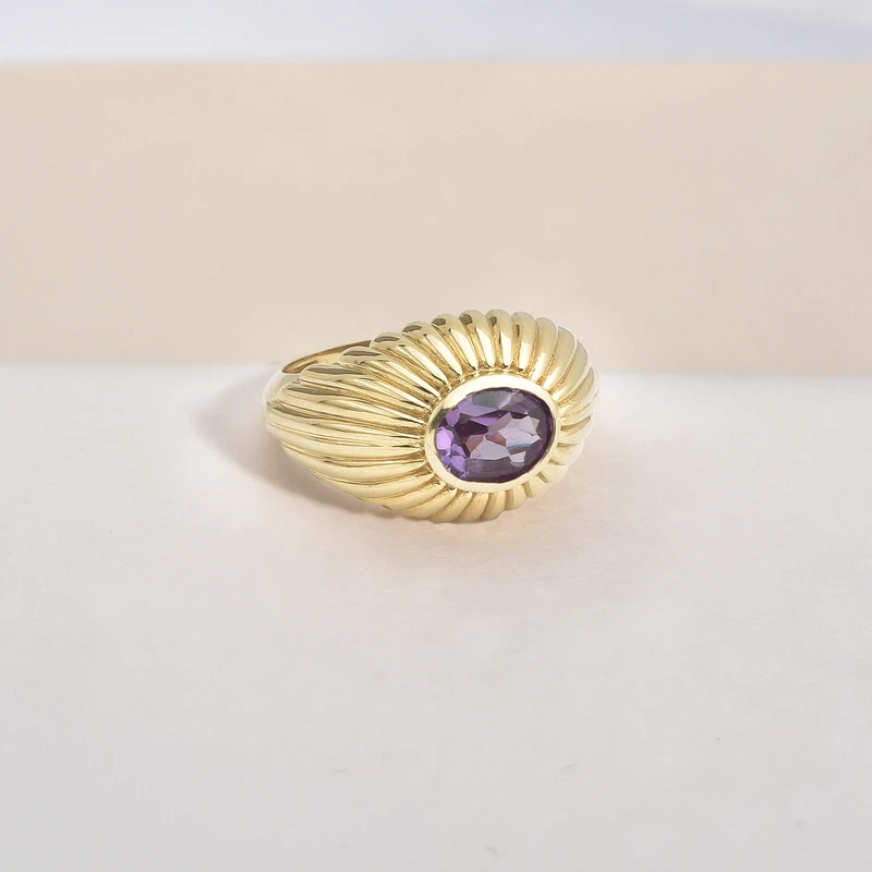 14k Gold Freeform Boulder Rutilated Quartz Ring